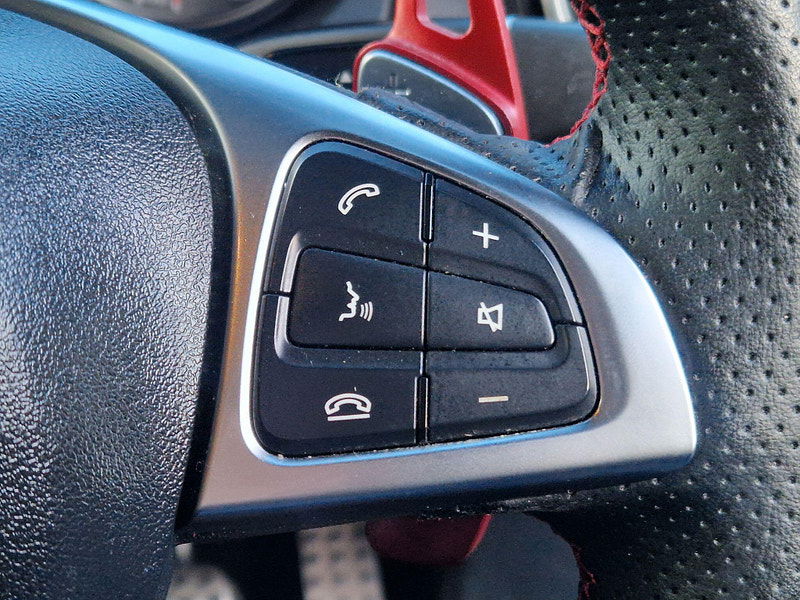 - Steering Wheel - 3-Spoke - 12 Button Multifunction Sports Steering Wheel Trimmed in Leather with Perforated Grip Area - Flattened Bottom Section and Red Contrast Stitching